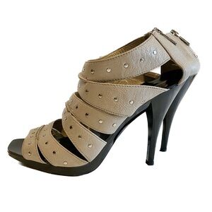 MICHAEL MICHAEL KORS Leather Studded Stilettos, Tan Size 9