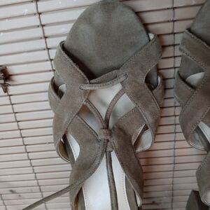 MICHAEL MICHAEL KORS MIRABEL SUEDE STRAPPY SANDALS - SIZE 10M TAN. A1pem