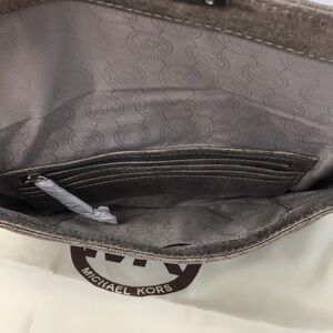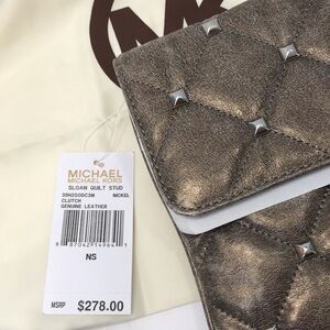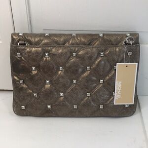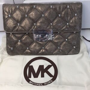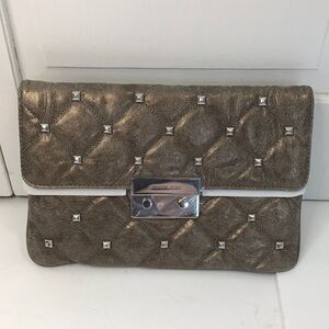 MICHAEL MICHAEL KORS Metallic Gray Sloan Leather Studded Clutch