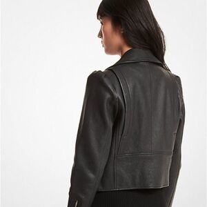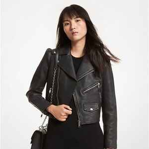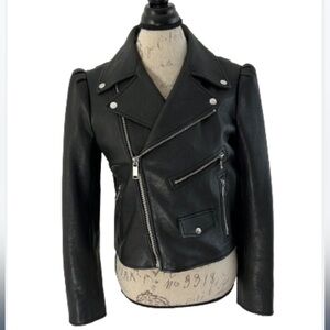 MICHAEL MICHAEL KORS Pebbled Leather Puff-Sleeve Moto Jacket Size Medium