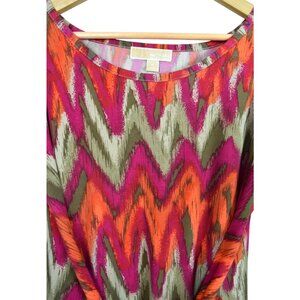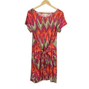 MICHAEL MICHAEL KORS STRETCH MULTICOLOR CHEVRON PRINT BELTED DRESS