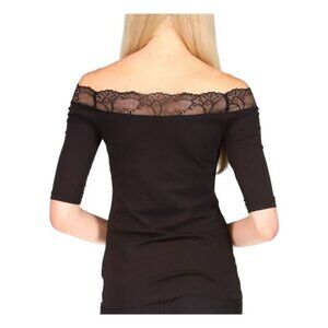 MICHAEL MICHAEL KORS Womens' Black Lace Sheer Short Sleeve Off Shoulder Top XL