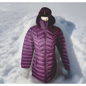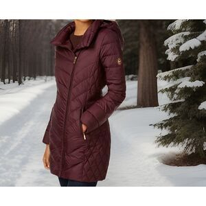 MICHAEL MICHAEL KORS Women's Quilted Down Packable Hooded Wine Puffer Coat Sz: M