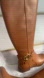 Chic tan heeled boots with signature MK logo. Sleek design for versatile wear. Color name Luggage