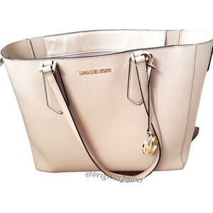 The majority of Michael Kors handbags are made with saffiano leather. This type of leather is extremely durable and is water and scratch resistant.