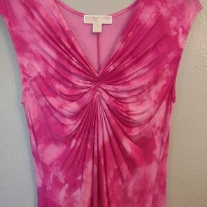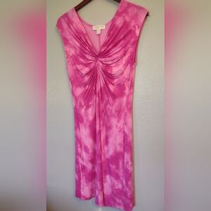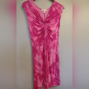 This is a perfect dress for summer! Hot pink tie-dyed Michael Michael Kors dress. Pullover style, super soft and stretchy with 95% rayon and 5% spandex. Gathered detail at the chest.