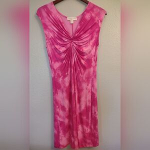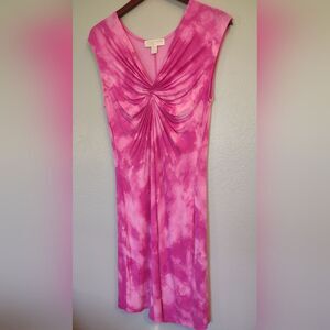 This is a perfect dress for summer! Hot pink tie-dyed Michael Michael Kors dress. Pullover style, super soft and stretchy with 95% rayon and 5% spandex. Gathered detail at the chest.