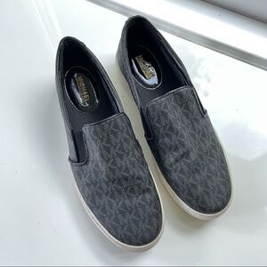 MICHAEL MICHAEL KORS Keaton Logo Slip-On Sneakers, Black Coated Canvas sz 7.5M