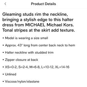 GLEAMIMG STUDS RIM THE NECKLINE, BRINGING EDGE TO THIS HALTER DRESS FROM MICHAEL KORS.