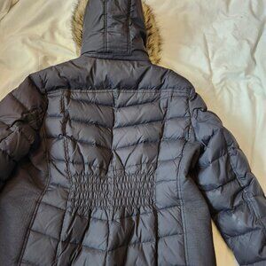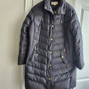 MICHAEL Michael Kors XL, Gray, Hooded Puffer Coat with front zipper closing overlay. Mixture of down and feathers. The