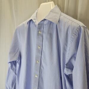 MICHAEL Michael Kors 100% Cotton Blue Stripe Dress Shirt, 16.5 32/33