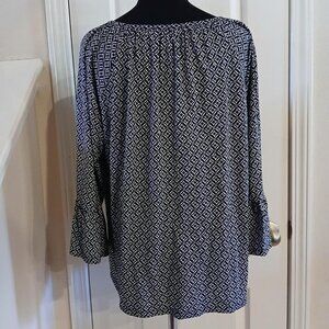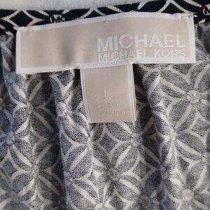 MICHAEL Michael Kors 3/4 bell sleeve black and white geometric elastic scoop neck blouse in size large.