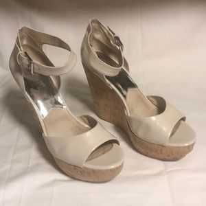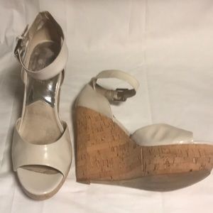 Gently used ankle wedges. See all pictures before purchasing. Heel is ultra high 4+ wedge.