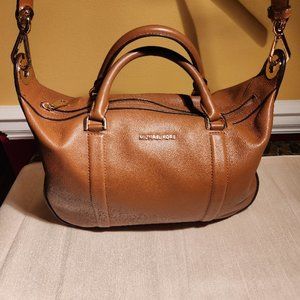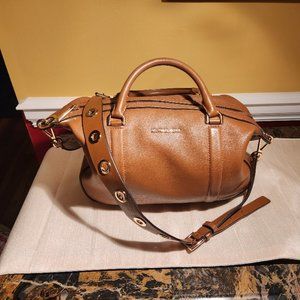Your new go to bag can be worn with the shoulder strap or remove. Brown leather with gold accents.Bottom feet are slightly scratched Gently used removable strap. Questions? Leave a comment below!