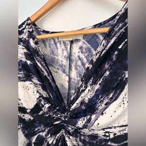 MICHAEL Michael Kors Abstract Print stretch Sleeveless Dress. Dark purples and blue violets on a white background. Gathered at the bust to form a v-neck. Pull over style. Size medium. Happy to give measurements upon request!