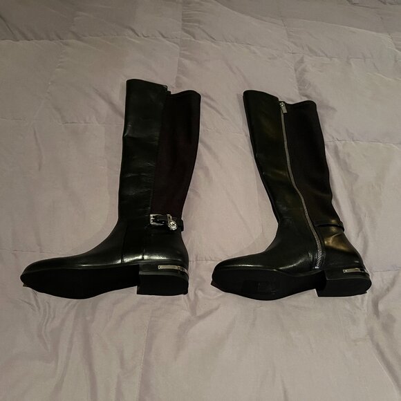 MICHAEL Michael Kors Aileen Black Leather and Ponte OTK Flat Boots - Size 7M
