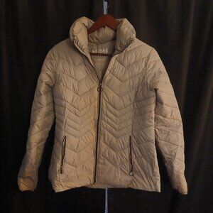 MICHAEL Michael Kors Beige Satin Specks Chevron Puffer Women's Jacket Small