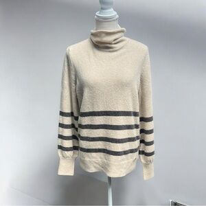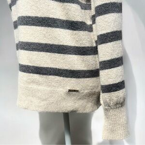 🌻MICHAEL Michael Kors Beige w Gray Striped Merino & Alpaca Wool Blend Sweater L