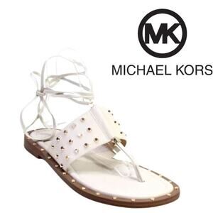 New With Tags MICHAEL Michael Kors | Beige Jagger Ankle-Tie Studded Leather Sandal | Size 6.5