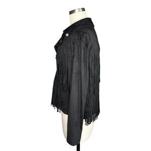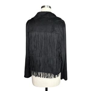Women's black fringe faux suede moto jacket from Michael Michael Kors in size 10. New without tags.