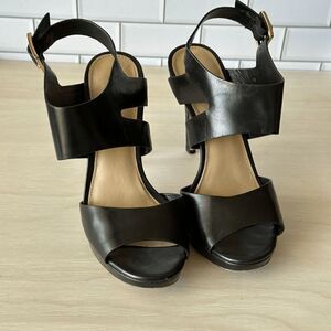 MICHAEL Michael Kors Black Leather Open Toe Buckle Heels - Size 7.5