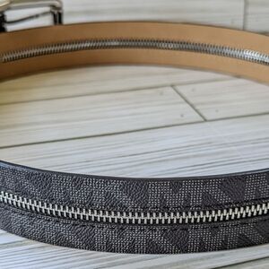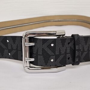 MICHAEL Michael Kors Black Monogram Zippered Belt Silver Tone Buckle Size Large