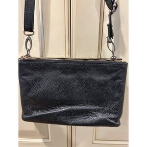 Thoughtfully organized with two separate zip compartments, this pebbled leather style is designed with gold-tone hardware and an adjustable shoulder strap.