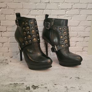 MICHAEL Michael Kors Black Studded Platform Leather Ankle Boots - Size 8