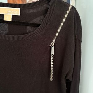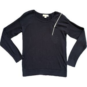 MICHAEL Michael Kors Black Sweater with Silver Zipper Detail size S