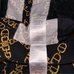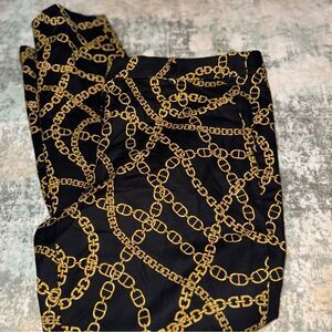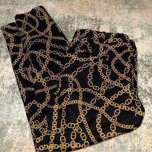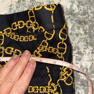 Elegant black trousers with striking gold chain pattern. Ideal for a sophisticated style.