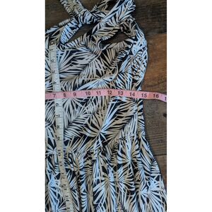 MICHAEL Michael Kors Black White Palm Leaf Print Maxi Dress L Open Back