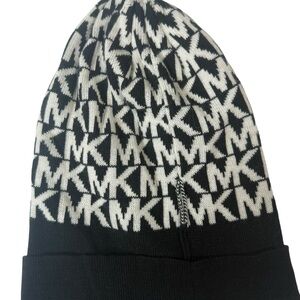 Stylish knit beanie with MK logo pattern. Perfect for a chic look.