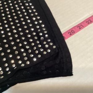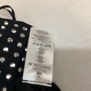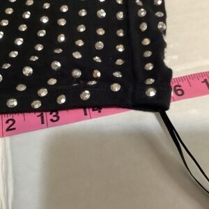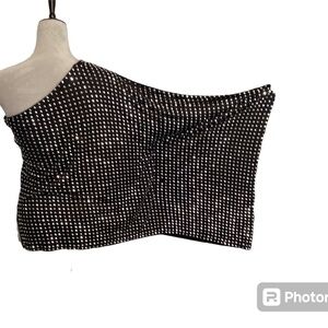 Stylish one-shoulder tunic. Black with white polka dots. Elegant and modern design.