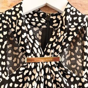 MICHAEL Michael Kors Blouse Women’s Size Small Black Cream Animal Print NWT