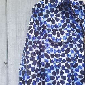 MICHAEL Michael Kors Blue White Abstract Print Full Zip Light Jacket Collared S
