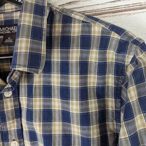 MICHAEL Michael Kors Blue and Tan Plaid Button Down Roll Sleeve Shirt Sz Medium