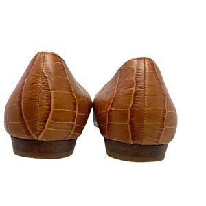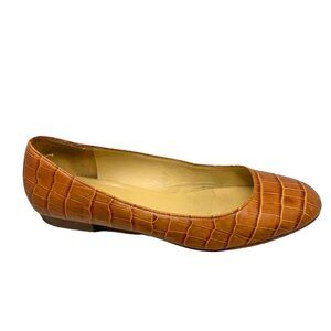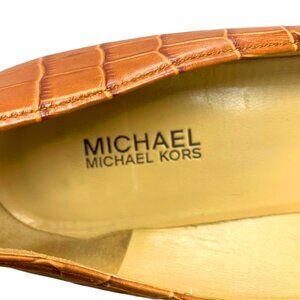 MICHAEL Michael Kors Brown Croc Embossed Leather Round Toe Flats