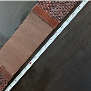 MICHAEL Michael Kors Brown Leather Braided Wide Waist Belt, Size XS/S