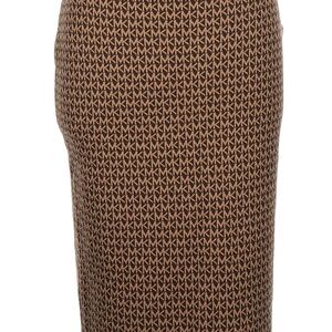 MICHAEL Michael Kors Brown Logo Jacquard Midi Pencil Skirt XS Straight