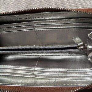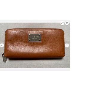 MICHAEL Michael Kors Brown Pebbled Leather Gold Logo Zip Clutch Wallet