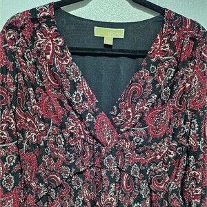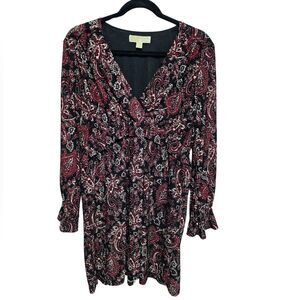 MICHAEL Michael Kors Burgundy Paisley Textured Long Sleeve Lined Dress Size P/L