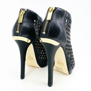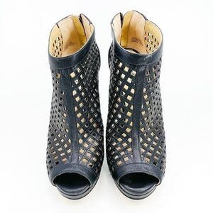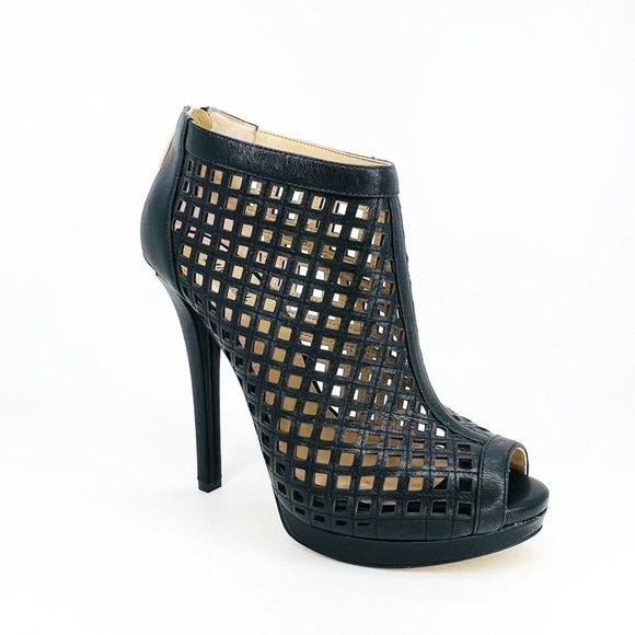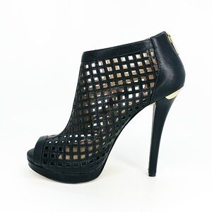 MICHAEL Michael Kors Caged Heels Black Leather Bootie Platform Peep Toe Size 8