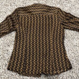 Excellent condition no stains rips or fading. Dark brown and gold chain link print with gold buttons. No size tag but it fits like XS.