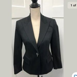 Women’s classic and chic black blazer with silver toggle enclosure. Blazer is great for work paired with slacks or with jeans for a polished and chic look. Blazer is in excellent used condition; gently worn.