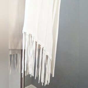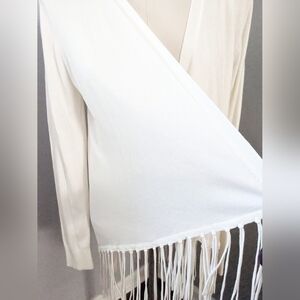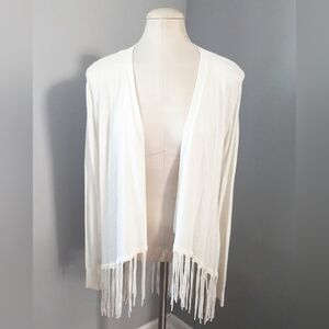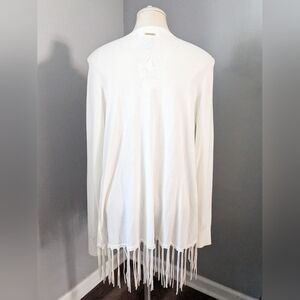 MICHAEL Michael Kors Drape Front Fringe Cardigan Cream Tassels Knotted Large NWT