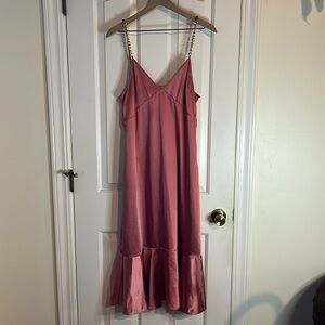 MICHAEL Michael Kors | Dusty Rose Chain-Strap Ruffle Satin Slip Midi Dress Large