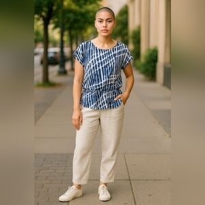 MICHAEL Michael Kors Elastic Ruffled Waist Rolled Snap Sleeve Top