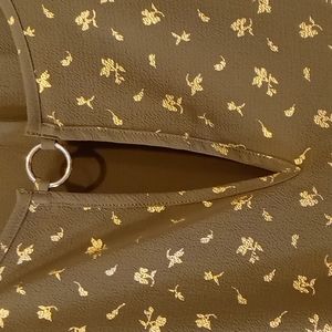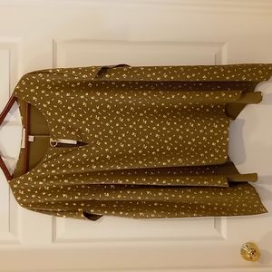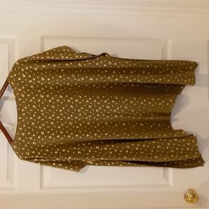 Flattering, gorgeous elegant smokey olive blouse with gold accented with a ring detail at the keyhole neck, this foil-printed top from MICHAEL Michael Kors is finished in a figure-flattering handkerchief hem.
