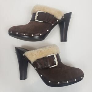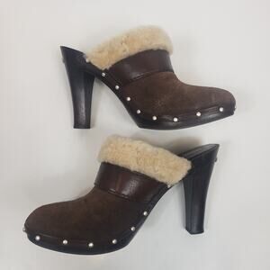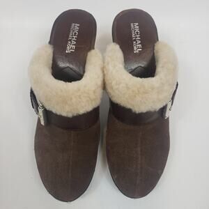 MICHAEL Michael Kors Fairbanks Brown Suede Sherpa Lined Mules Size 8.5