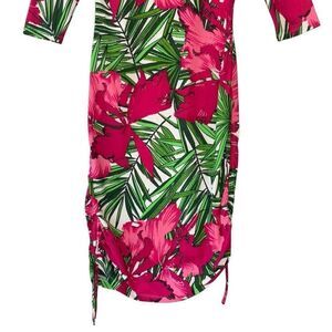 MICHAEL Michael Kors Floral Fuchsia Green Print Bodycon Ruched Dress Women Sz4